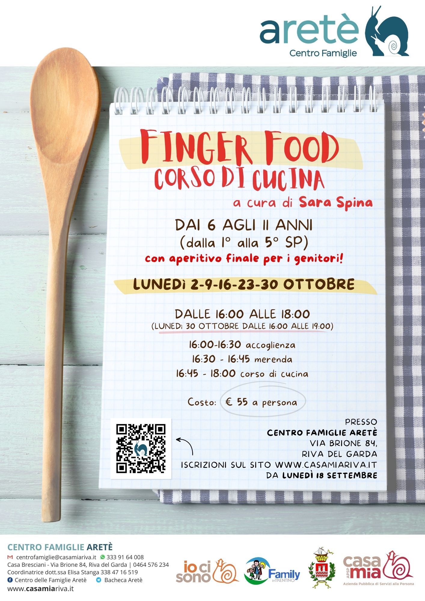 Parte lunedì 2 ottobre il corso di cucina a cura di Sara Spina dedicato al “Finger Food”, per la Scuola Primaria: 5 incontri per realizzare insieme appetitosi stuzzichini, da condividere con la famiglia all’aperitivo finale!